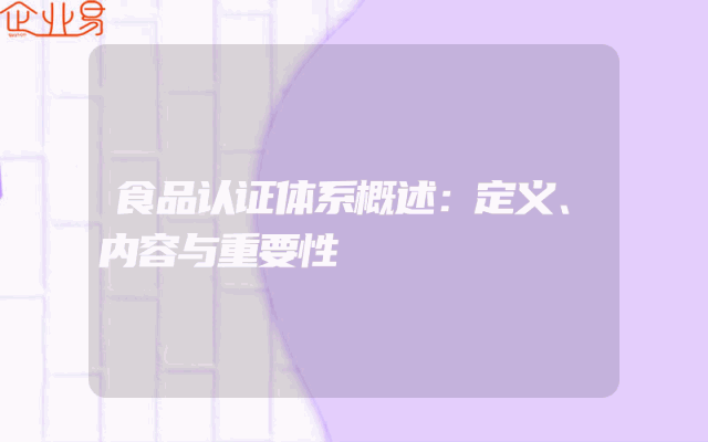 - 食品认证体系概述:定义、内容与重要性一、食品认证体系的定义食品认证体系是指为保证食品质量安全,确保食品符合相关法规标准,通过一系列程序、方法和制度,对食品生产、加工、流通等各环节进行系统性评价和认证的制度体系。二、食品认证体系的内容1.法规