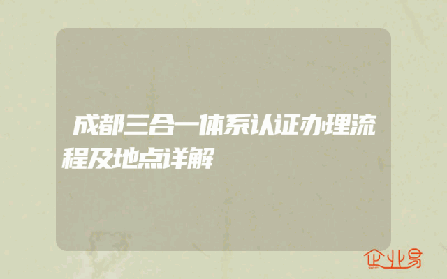 - 成都三合一体系认证办理流程及地点详解一、引言随着市场竞争的日益激烈,企业越来越注重管理体系的完善与提升。成都地区的企业在追求高质量发展的过程中,对三合一体系认证(即质量管理体系认证、环境管理体系认证、职业健康安全管理体系认证)的需求也日益增