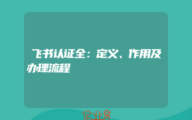 - 飞书认证全:定义、作用及办理流程