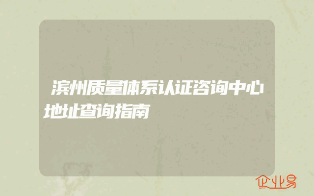 - 滨州质量体系认证咨询中心地址查询指南