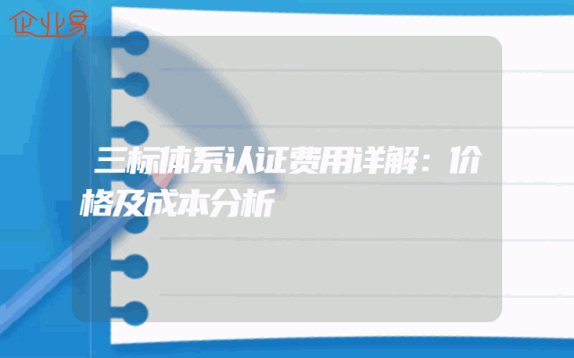 - 三标体系认证费用详解:价格及成本分析了解三标体系认证的重要性随着市场竞争的日益激烈,企业为了提升竞争力,不断追求规范化、标准化管理。其中,三标体系认证(即质量管理体系认证、环境管理体系认证、职业健康安全管理体系认证)成为了众多企业的