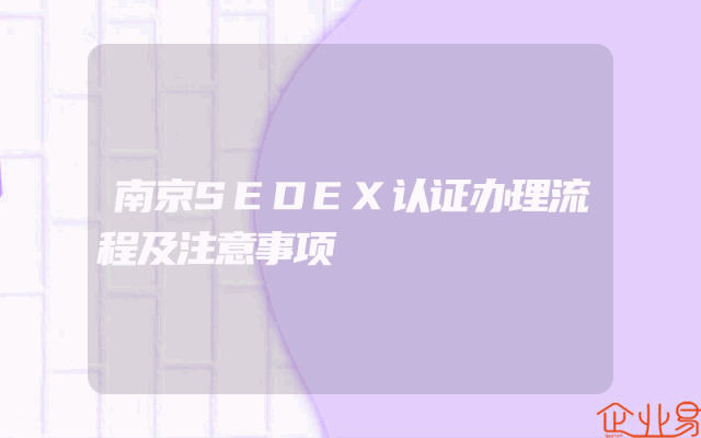 - 南京SEDEX认证办理流程及注意事项一、了解SEDEX认证SEDEX认证是一种针对企业安全管理的认证体系,旨在确保企业在特定领域内遵循最佳的安全实践。对于在南京的企业而言,获得SEDEX认证是提升竞争力的重要途径。首先,企业需要明确SEDE