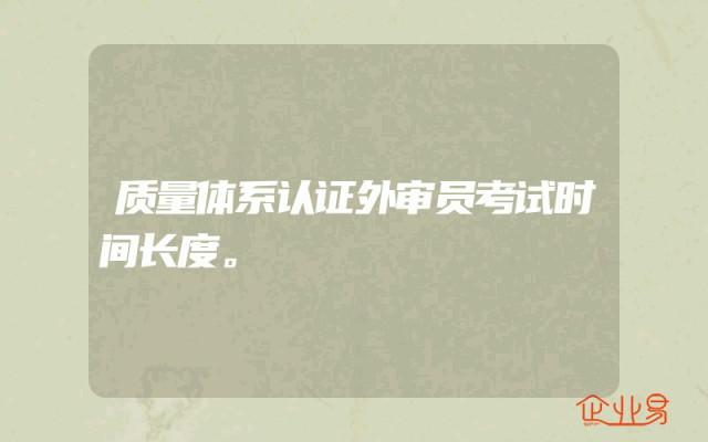 - 质量体系认证外审员考试时间长度解析一、考试概述质量体系认证外审员考试是对从事质量管理和体系认证工作的人员进行的一项重要考核。该考试涉及质量管理体系标准、审核流程、审核技巧等多方面的知识,要求考生具备扎实的理论基础和实践经验。对于准备