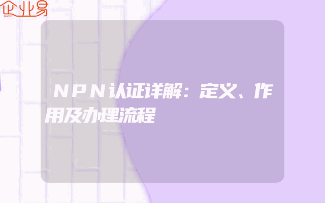 - NPN认证详解:定义、作用及办理流程