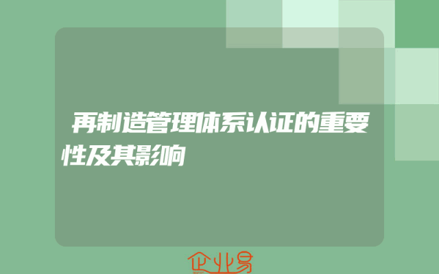 - 再制造管理体系认证的重要性及其影响