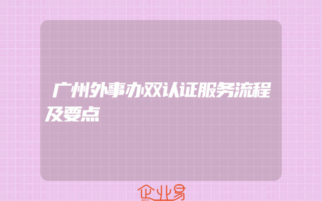 - 广州外事办双认证服务流程及要点解析一、引言随着全球化的发展,企业间的交流与合作日益频繁,广州外事办双认证服务成为了企业跨境活动的重要支撑。该服务涉及外事管理的方方面面,不仅为各类企业提供全方位的国际化支持,还为跨国项目的推进和企业海外业务的