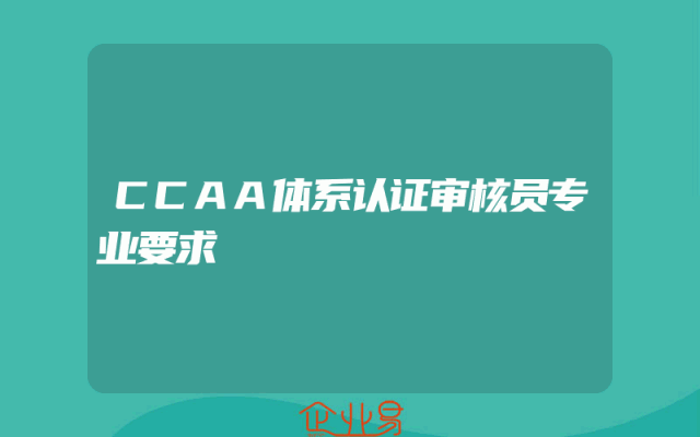 - CCAA体系认证审核员专业要求解析一、引言随着全球化的不断深入,企业竞争日趋激烈,为保证产品和服务的质量,越来越多的企业开始追求标准化和规范化,CCAA体系认证作为一种权威的认证标准应运而生。作为CCAA体系认证审核员,其专业要求和职责显得