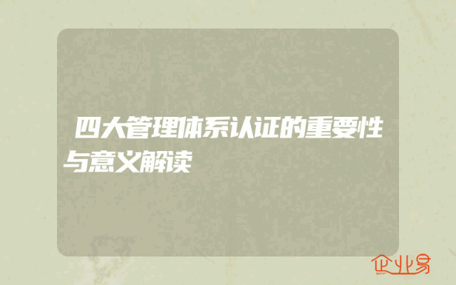 - 四大管理体系认证的重要性与意义解读一、质量管理体系认证的重要性在现代企业运营中,质量管理体系认证是确保企业产品和服务质量的关键环节。通过质量管理体系认证,企业能够建立一系列的标准流程,确保从原材料采购到产品生产、销售及售后服务的每一环节都有