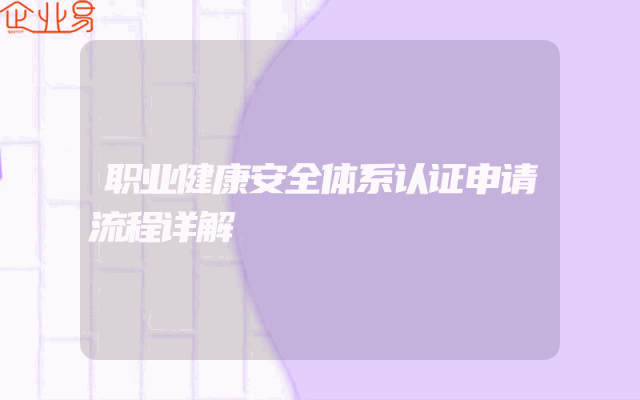 - 职业健康安全体系认证申请流程详解