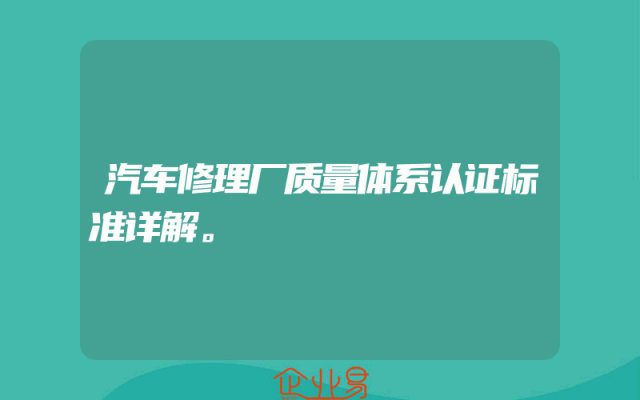 - 汽车修理厂质量体系认证标准详解。