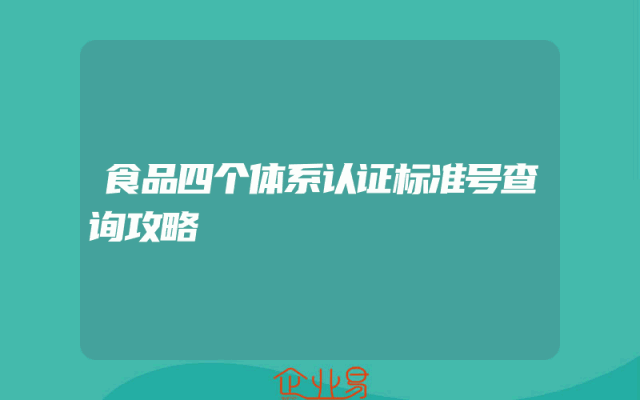 - 食品四个体系认证标准号查询攻略一、了解四个体系认证背景及重要性随着食品行业的迅速发展,为确保食品安全和品质,国家推出了一系列的认证标准。其中,食品四个体系认证(质量管理体系认证、食品安全管理体系认证、环境管理体系认证、职业健康安全管理体系认