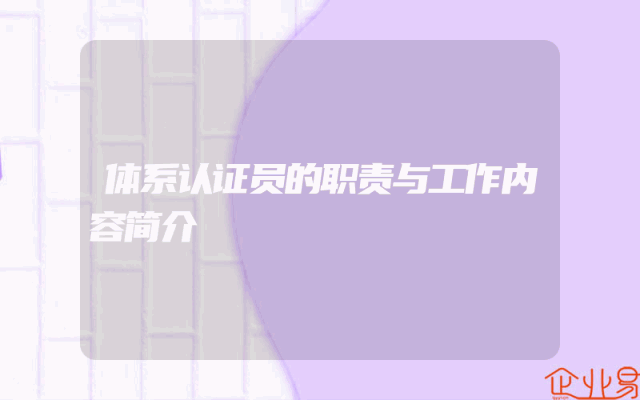 - 体系认证员的职责与工作内容简介职责概述作为体系认证员,其肩负着确保企业符合各类资质办理政策的重要职责。他们不仅需深入理解国家相关法律法规,还需熟练掌握各类企业资质的申请、审核与监管流程。他们的主要任务在于验证企业的管理体系、运营流程以及质量