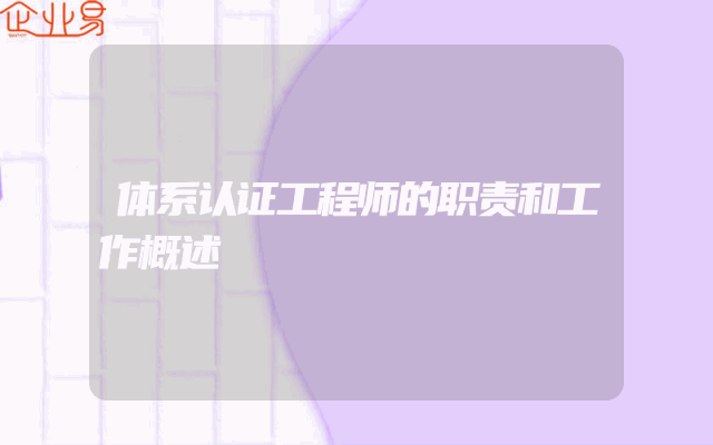 - 体系认证工程师的职责与工作流程概述一、体系认证工程师的角色与职责体系认证工程师在企业服务行业中扮演着至关重要的角色,他们主要负责确保企业运营体系的合规性和有效性。这一职位涉及的工作内容广泛,包括建立和维护企业的质量管理体系、环境管理体系以及
