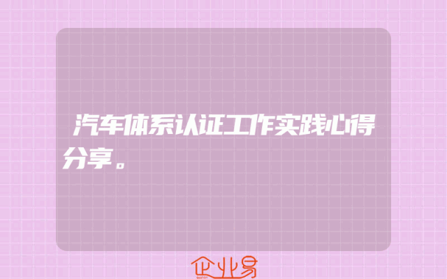 - 汽车体系认证工作实践心得分享。