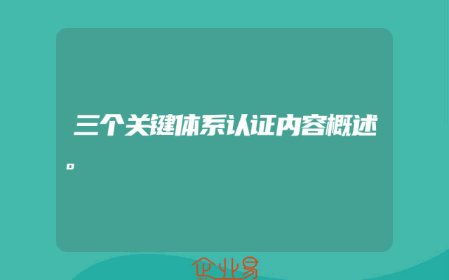 - 三个关键体系认证内容概述一、三大关键体系的简介在现代企业服务行业中,三大关键体系认证对于企业的持续发展和竞争力提升至关重要。这三大关键体系包括质量管理体系认证、环境管理体系认证以及职业健康安全管理体系认证。这些认证不仅有助于企业规范管理,提