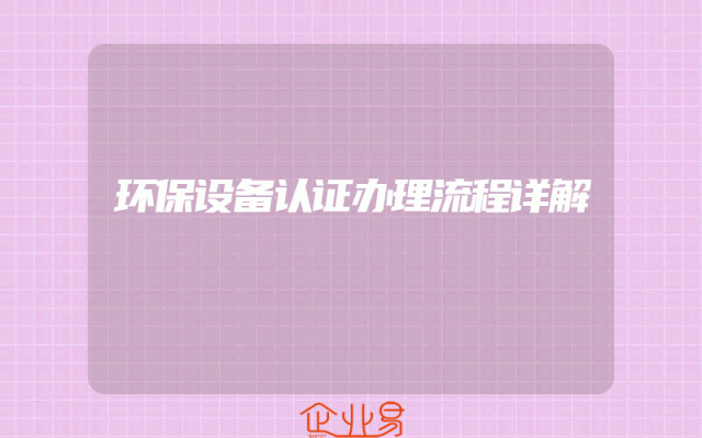 - 环保设备认证办理流程详解