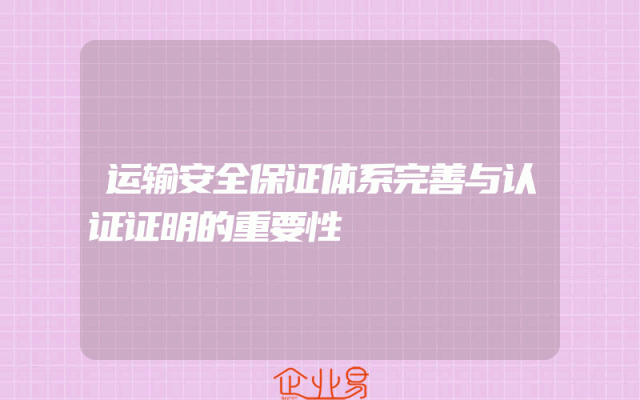 - 运输安全保证体系完善与认证证明的重要性