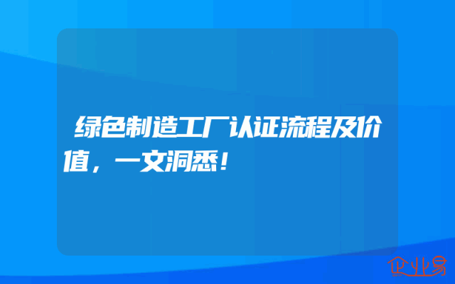 - 绿色制造工厂认证流程及价值,一文洞悉!