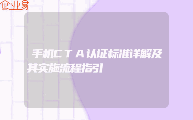- 手机CTA认证标准详解及其实施流程指引