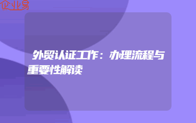 - 外贸认证工作:办理流程与重要性解读