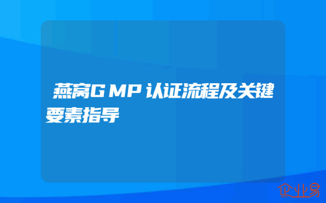 - 燕窝GMP认证流程及关键要素指导