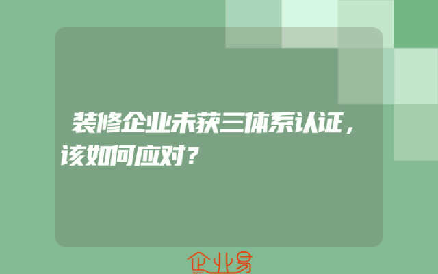 - 装修企业未获三体系认证,该如何应对?