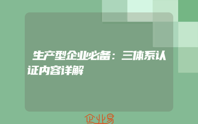 - 生产型企业必备:三体系认证内容详解