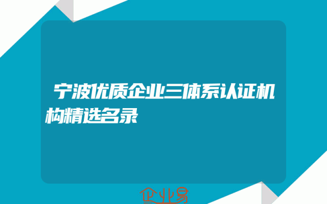 - 宁波优质企业三体系认证机构精选名录