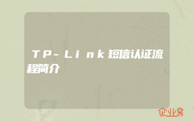 - TP-Link短信认证流程简介
