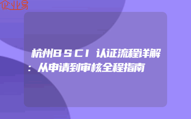 - 杭州BSCI认证流程详解:从申请到审核全程指南