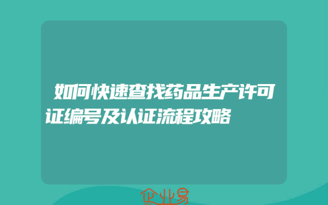 - 如何快速查找药品生产许可证编号及认证流程攻略