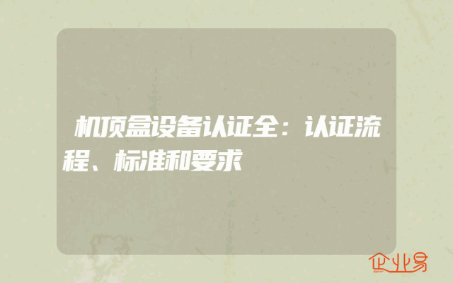 - 机顶盒设备认证全解析:认证流程、标准和要求一、机顶盒设备认证的重要性随着信息技术的飞速发展,机顶盒作为连接电视与数字化服务的桥梁,其认证的重要性愈发凸显。设备认证不仅是保障设备性能和质量的重要手段,更是维护消费者利益和信息安全的关键环节。本