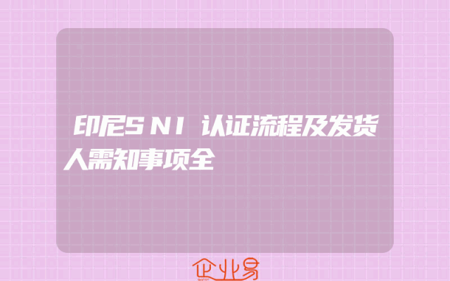 - 印尼SNI认证流程及发货人需知事项全解析一、印尼SNI认证流程简介印尼SNI认证是印度尼西亚的国家标准认证,旨在确保进口产品符合当地的法规和标准要求。对于希望进入印尼市场的企业来说,了解SNI认证流程至关重要。二、具体的SNI认证流