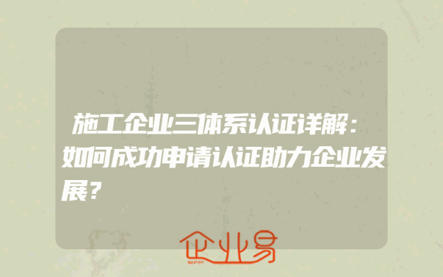 - 施工企业三体系认证详解:如何成功申请认证助力企业发展?