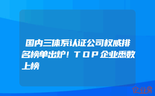 - 国内三体系认证公司权威排名榜单出炉!TOP企业悉数上榜