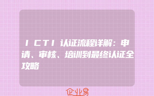 - ICTI认证流程详解:申请、审核、培训到最终认证全攻略