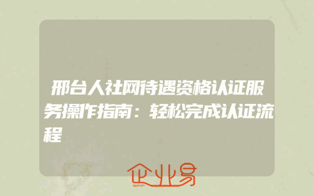 - 邢台人社网待遇资格认证服务操作指南:轻松完成认证流程一、了解邢台人社网待遇资格认证服务随着数字化服务的普及,邢台人社网为市民提供了便捷的待遇资格认证服务。该服务主要针对需要领取各类社保待遇的人群,