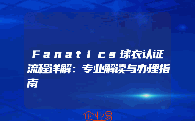 - Fanatics球衣认证流程详解:专业解读与办理指南一、引言随着体育产业的快速发展,越来越多的人开始关注收藏体育纪念品,其中球衣认证更是备受瞩目。作为一家专业的企业服务从业者,深知大家对球衣认证的关注与期待。本文将详细介绍Fanatics球