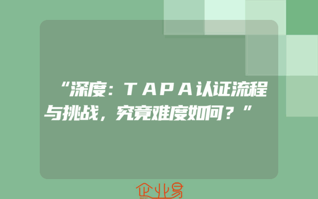 - “深度:TAPA认证流程与挑战,究竟难度如何?”