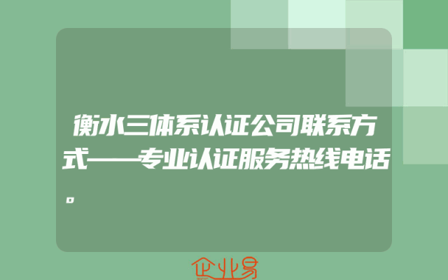 - 衡水三体系认证公司联系方式——专业认证服务热线电话。