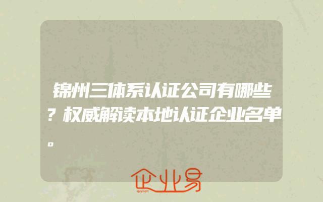 - 锦州三体系认证公司有哪些?权威解读本地认证企业名单。