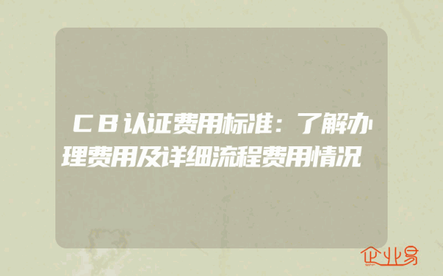 - CB认证费用标准:了解办理费用及详细流程费用情况