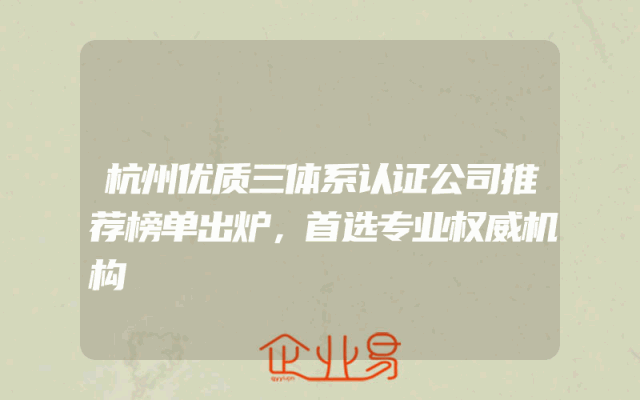 - 杭州优质三体系认证公司推荐榜单出炉,首选专业权威机构