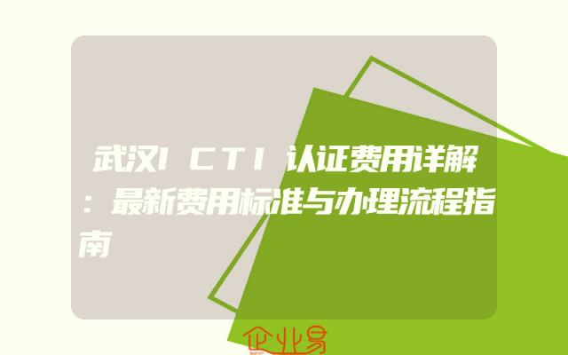 - 武汉ICTI认证费用详解:最新费用标准与办理流程指南