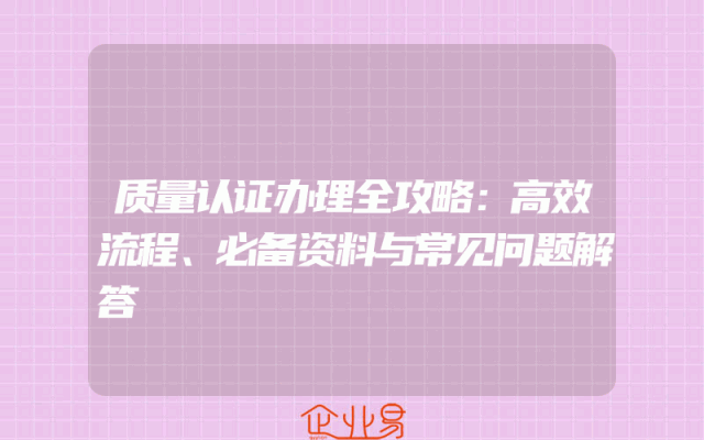 - 质量认证办理全攻略:高效流程、必备资料与常见问题解答