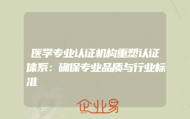 - 医学专业认证机构重塑认证体系:确保专业品质与行业标准