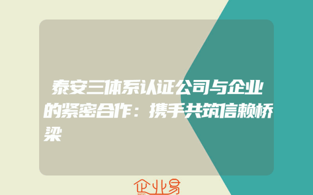 - 泰安三体系认证公司与企业的紧密合作:携手共筑信赖桥梁
