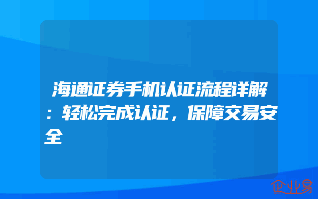 - 海通证券手机认证流程详解:轻松完成认证,保障交易安全