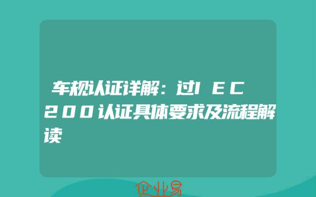 - 车规认证详解:过IEC 200认证具体要求及流程解读