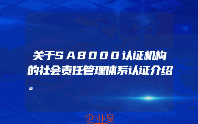 - 关于SA8000认证机构的社会责任管理体系认证介绍。
